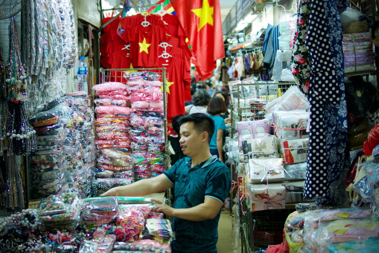 Dieser größte überdachte Markt Hanois wurde ursprünglich 1889 von der französischen Verwaltung erbaut. 1994 wurde er durch einen Brand fast komplett zerstört, seitdem herrscht striktes Rauchverbot. Hier merkt man deutlich, dass China nicht weit weg ist, die angebotenen Waren (wohl hauptsächlich für Wiederverkäufer) bestehen zu 99% aus chinesischem Billigramsch jeglicher Art. Interessant sind die Nebengebäude, wo man Lebensmittel, Fisch und lebende Tiere kaufen kann. Ich habe Schildkröten, Katzen, Vögel und aber auch gegrillten Hund gesehen…