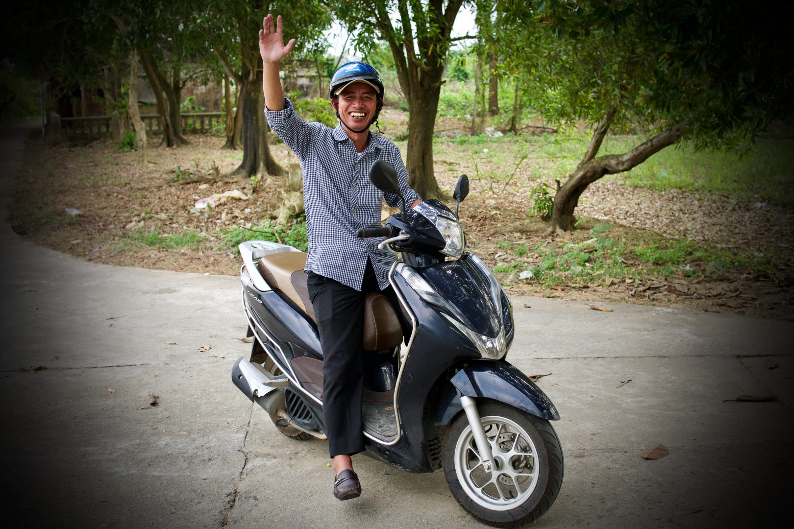 Nach der Schneideraktion wollte die Frau von Minh (ihren Namen konnte ich mir einfach nicht merken…) nach Hause, Minh war aber irgendwie unternehmenslustig. Er bot mir an, mit dem Moped auf´s Land zu fahren und mir seine Heimat zu zeigen. Lauerte da etwa ein weiteres Geschäft? Nein, das war ehrlich und ernst gemeint, anscheinend ist seine Frau für die Geschäfte zuständig – und das war ja schon abgeschlossen..