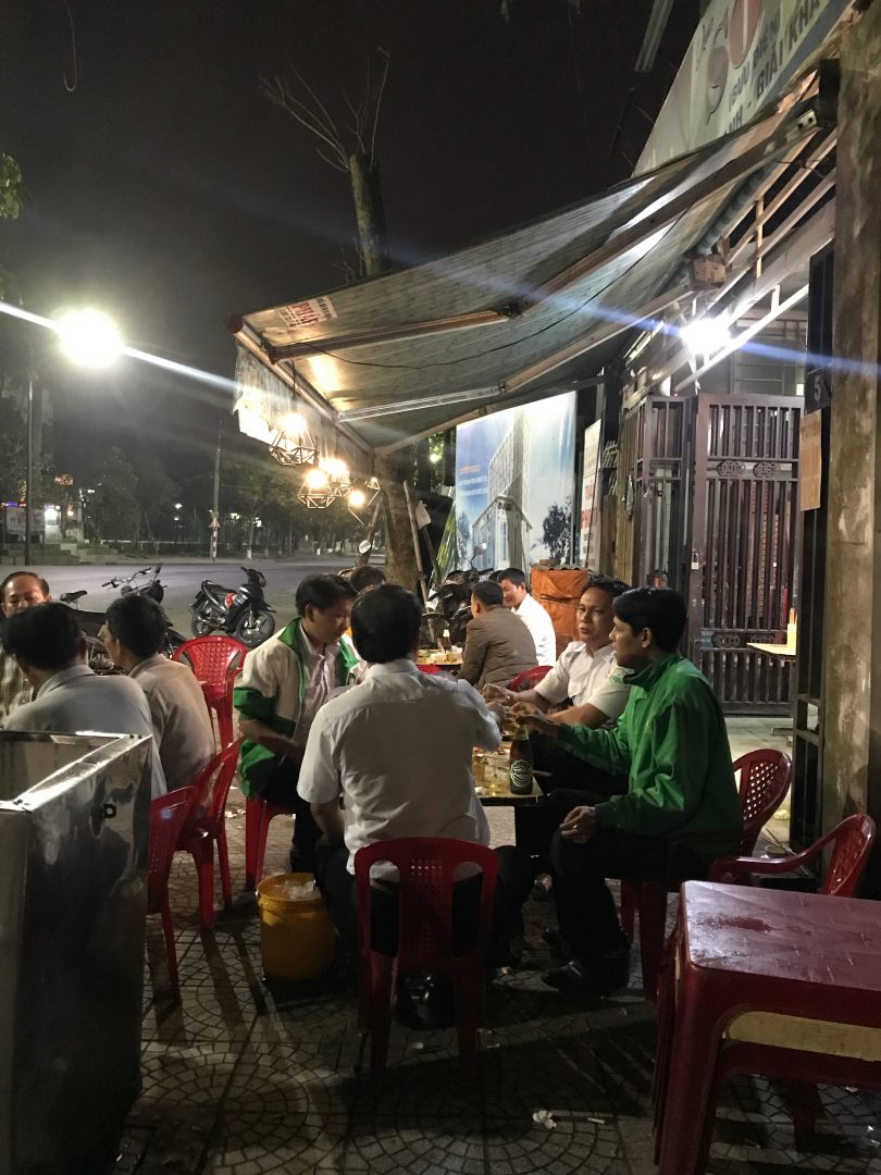 Erstes Abendbier in Hue. Die Einheimischen haben mich herangewunken, sie erzählten mir, dass sie alle Rikschafahrer sind und sich hier immer nach Feierabend treffen. Aber es heißt ja gar nicht Rikscha, sondern Xích lô.